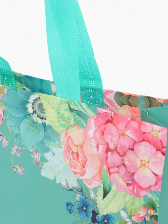 Сумка для покупок Цветы, 32*10*26. отд без молнии, голубой