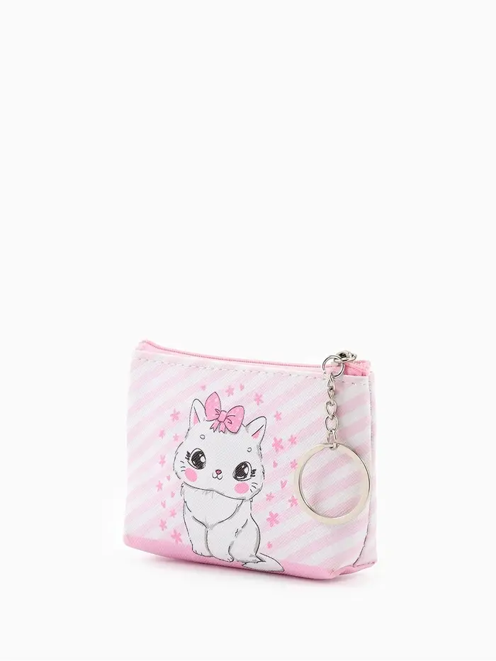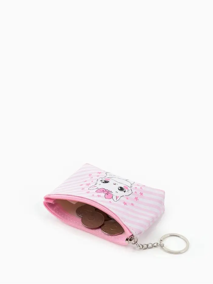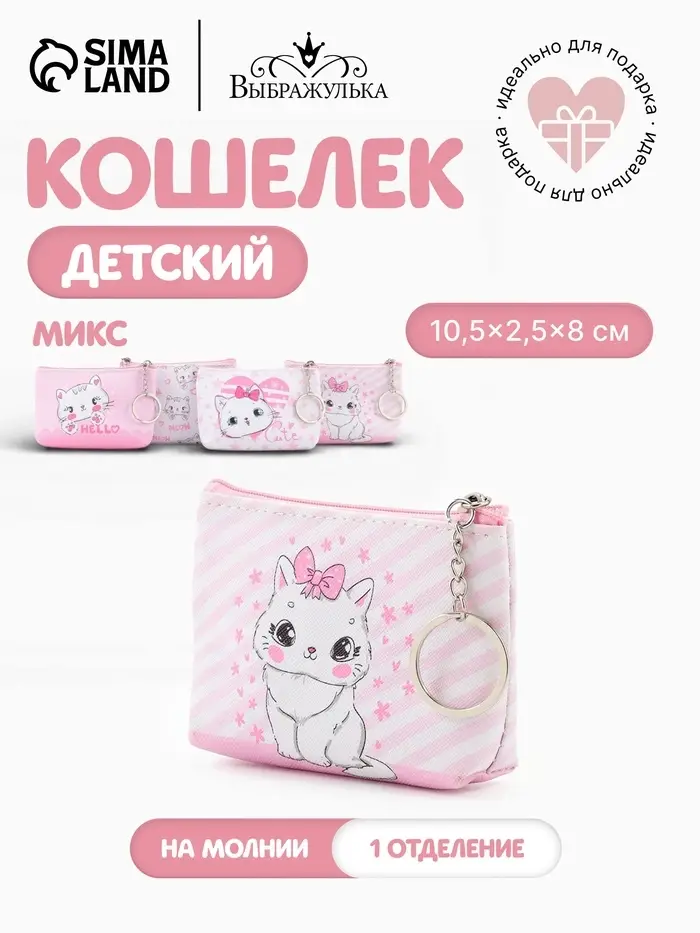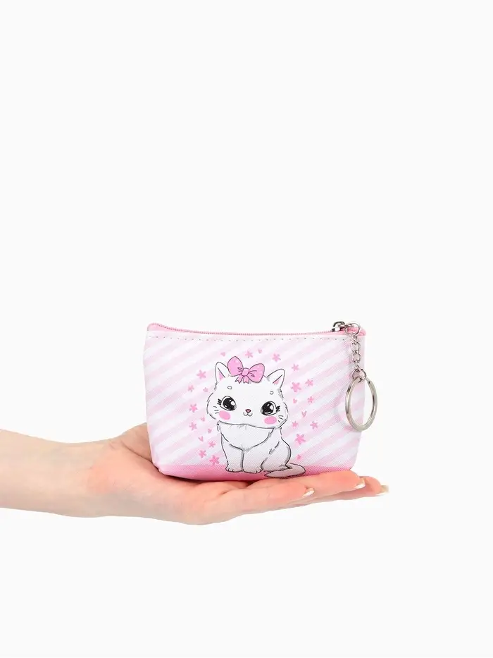 Эта детская монетница с котиком помогает девочке самостоятельно хранить свои первые монетки. Она учится поддерживать порядок в мелочах, а яркий дизайн превращает простой аксессуар в личную вещь, которую приятно брать с собой.
