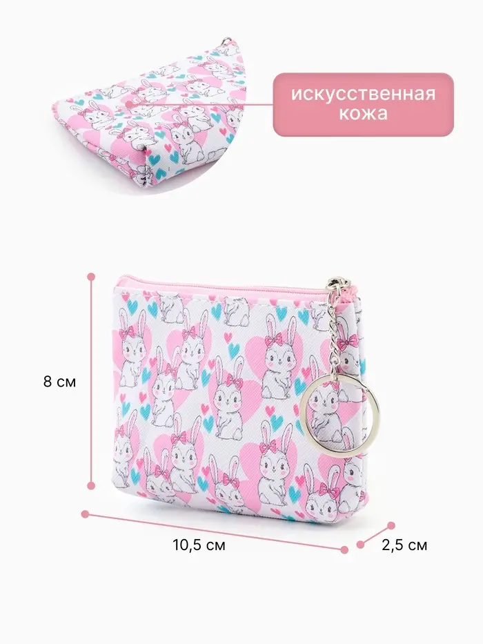 Кошелёк детский «Зайки», монетница, на молнии 10.5×2.5×8 см, с принтом, МИКС