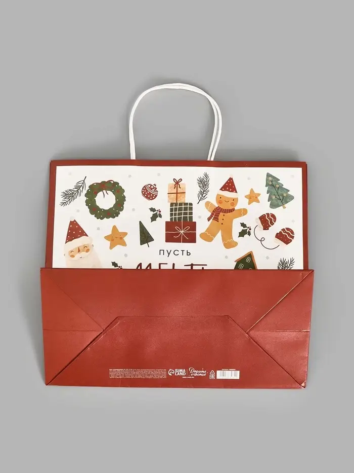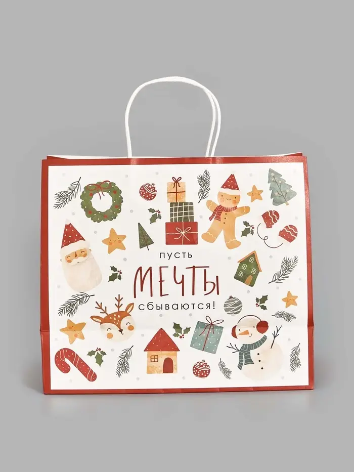Пакет подарочный «Мечты», белый крафт, 32 × 28 × 15 см