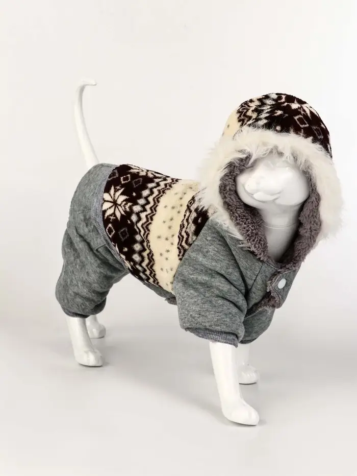 Комбинезон "Лапландия", с подкладом, размерразмер M (ДС 30, ОГ 40, ОШ 30 см), серый/бордо