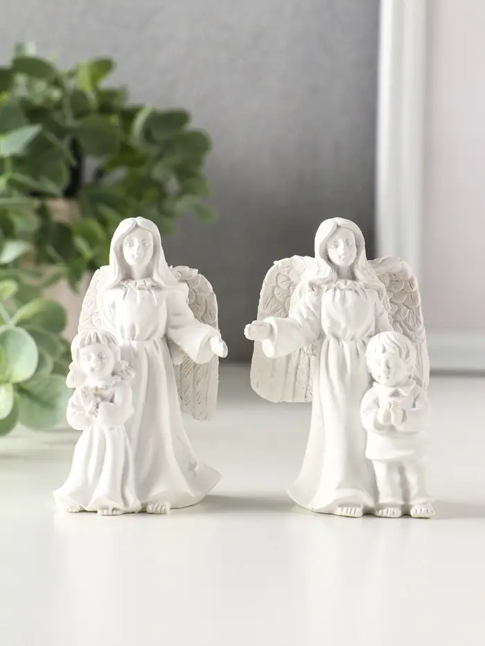 Сувенир полистоун "Девушка-ангел с ребёнком" белый МИКС 5,2х4,2х8,3 см