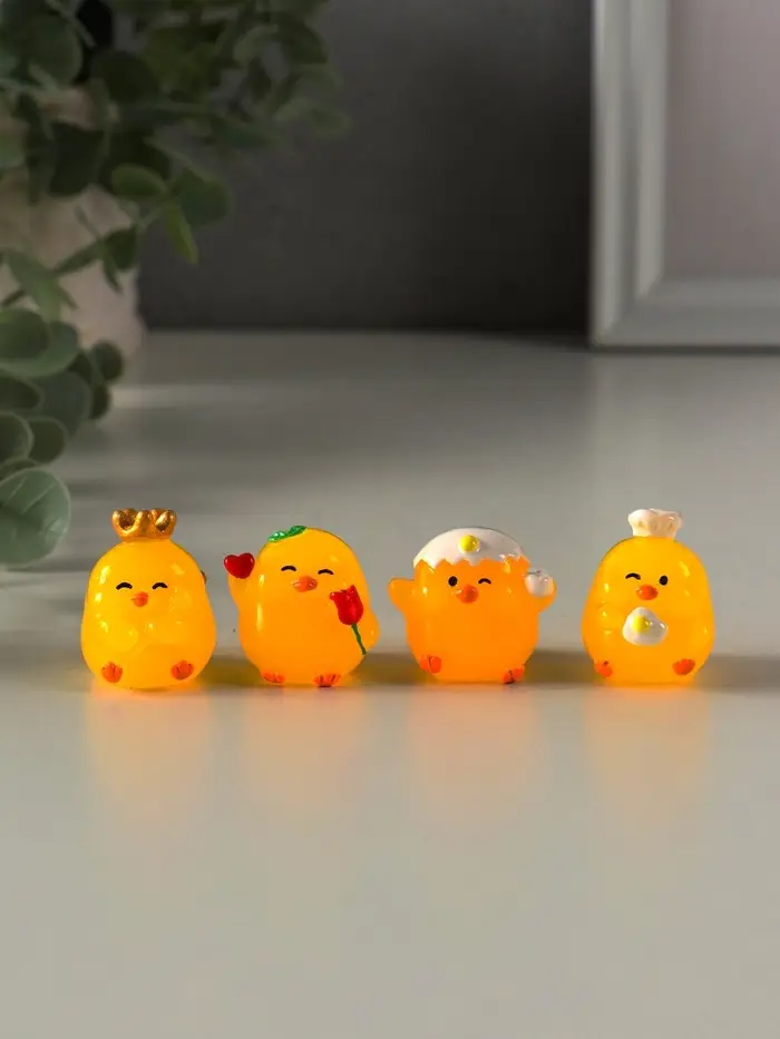 Сувенир полистоун флюоресцентный "Цыплята" набор 4 шт 2,5х3,2 см