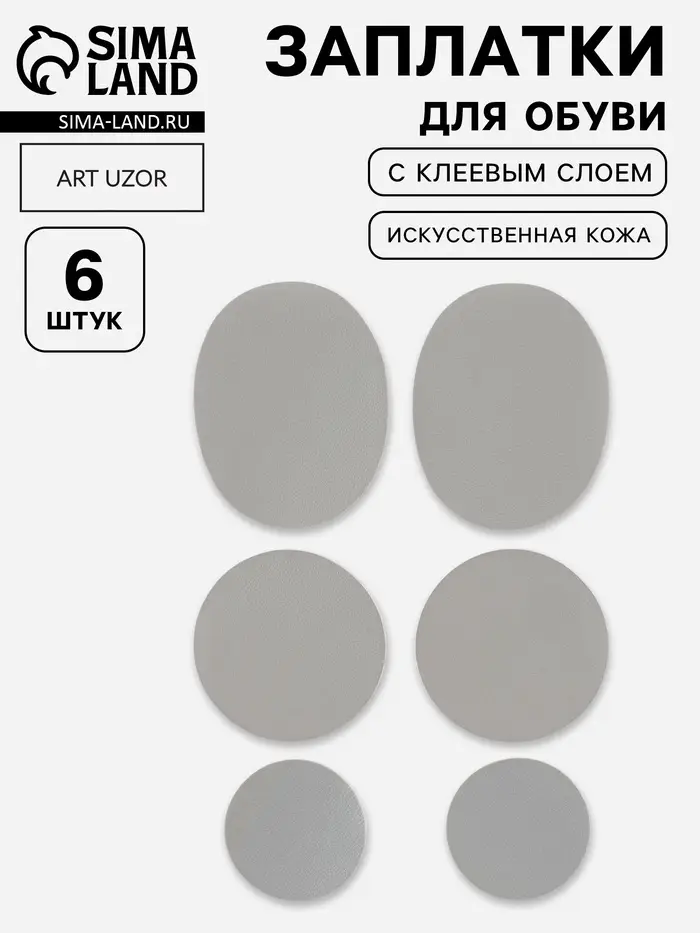 Набор 6шт заплаток клеевых для обуви кожзам серый АУ