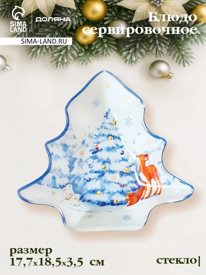 Блюдо сервировочное ёлочка "Новый Год в лесу" 17,7х18,5х3,5 см