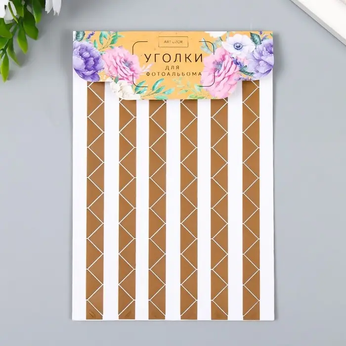 Набор уголков с кармашком для фотографий 102 уголка "Бронза с прозр. плёнкой" 10,3х15,1 см