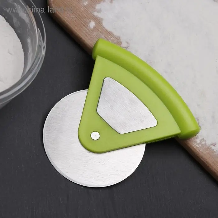 Нож для пиццы — универсальный кухонный инструмент, который не только легко разрезает готовую выпечку, но и помогает поделить на слайсы липкое тесто. Нож имеет эргономичную форму ручки и острое круглое лезвие. Колесо, прикреплённое к рукояти, продавливает продукт, а не разрезает его в отличие от классического ножа. Благодаря такому способу тесто разрезается, а начинка остается на месте.