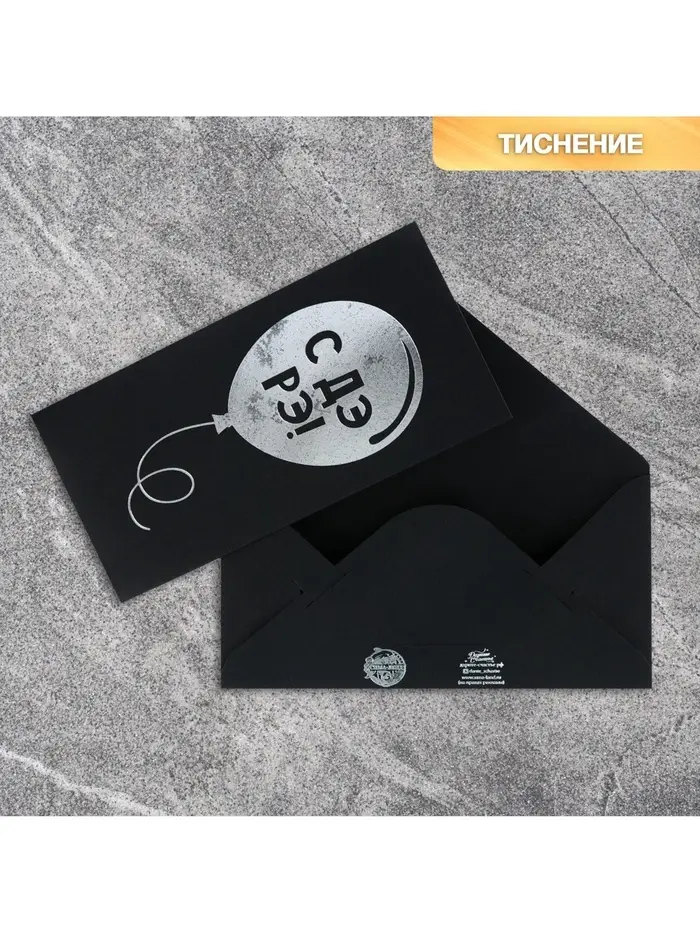 Конверт для денег «Шарик», на черном крафте, тиснение,16.5×8 см