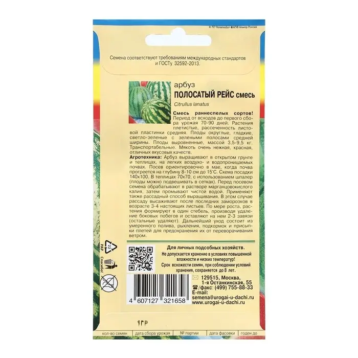 Семена Арбуз сахарный Смесь "ПОЛОСАТЫЙ РЕЙС", 1 г