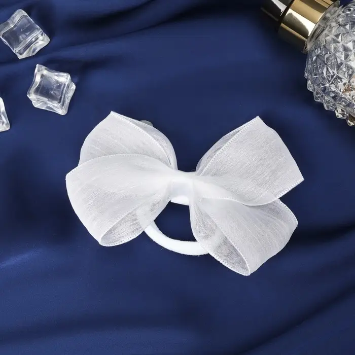 Резинка для волос бант "Школьница" перелив,10 см ,белый