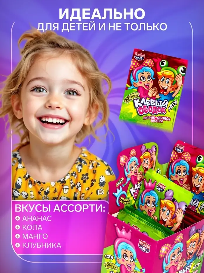 Эта карамель не просто сладость, а источник радости и развлечения. Яркие игрушки и временные татуировки добавляют элемент сюрприза, что делает её особенно популярной среди молодежи. Угощение идеально подходит для создания незабываемых моментов на вечеринках, где каждый сможет насладиться не только вкусом, но и эффектом!