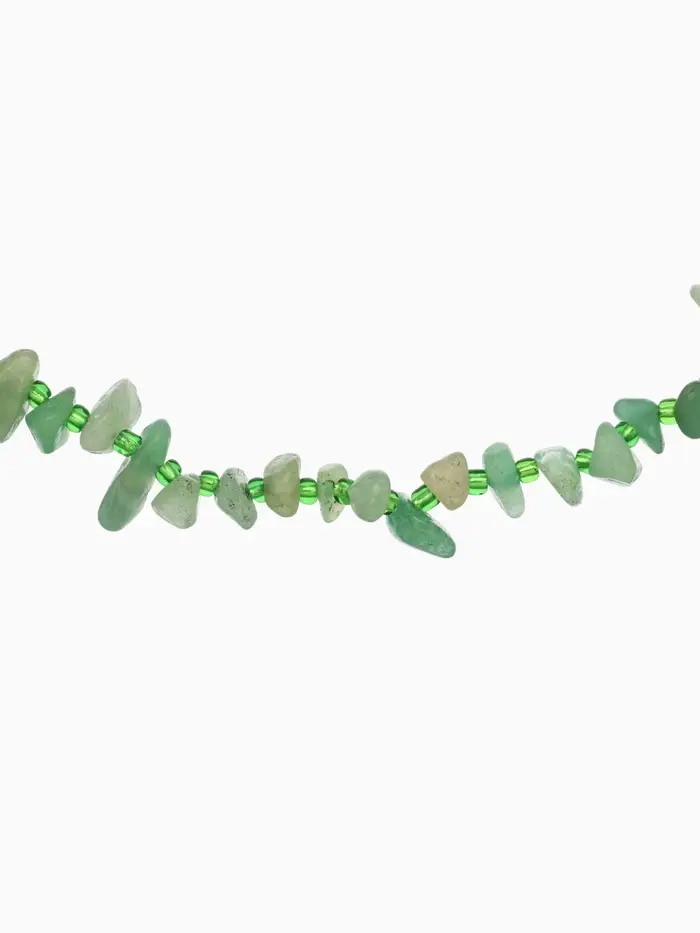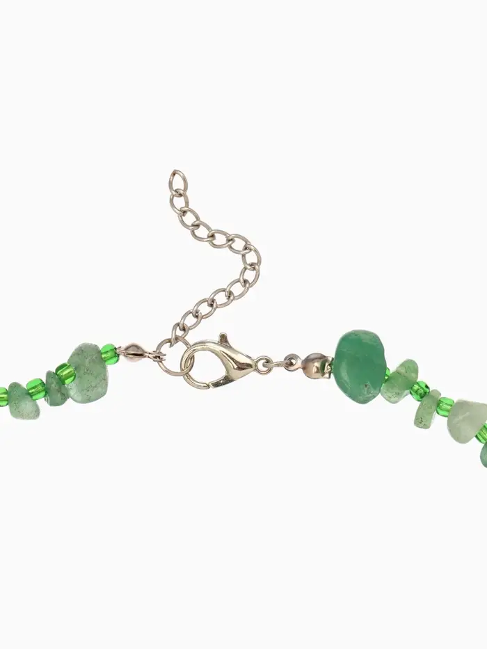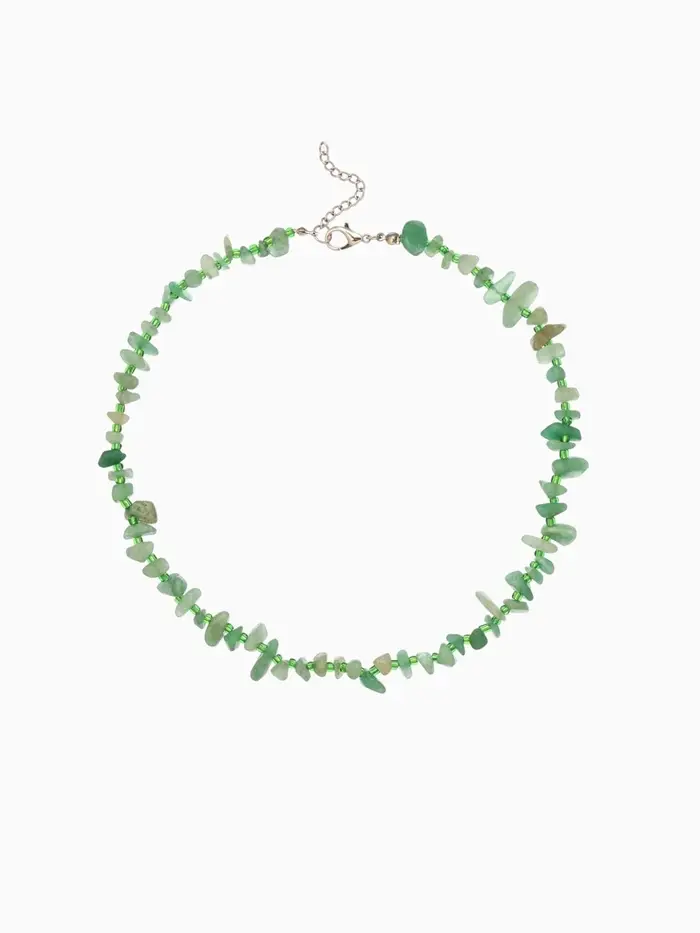 Поклонницам тонких намеков на природу понравится изящное зелёное колье длиной 45 см, созданное из бижутерного сплава с добавлением серебристой фурнитурурой. Оно доступно для женщин и девочек, добавляя пикантности повседневным и праздничным лукам.