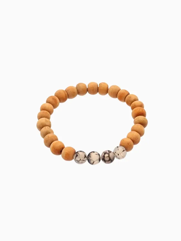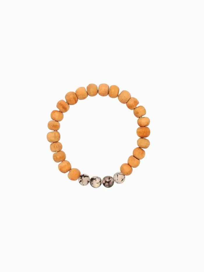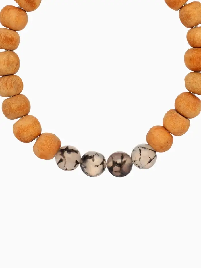 Браслет из сандалового дерева с агатом, длина 18 см, цв. чёрный