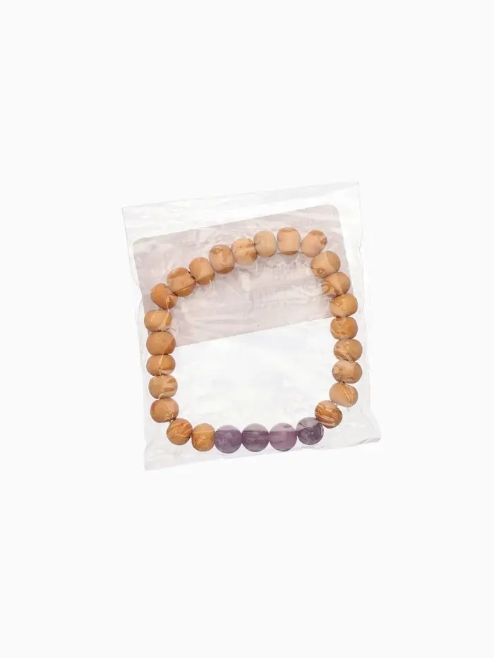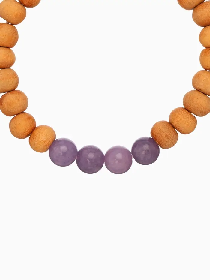 Браслет из сандалового дерева с агатом, длина 18 см, цв. сиреневый