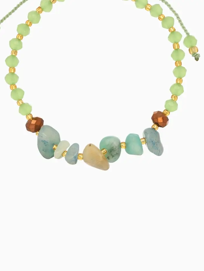 Браслет, длина 16 см, цв. фисташковый, золотой