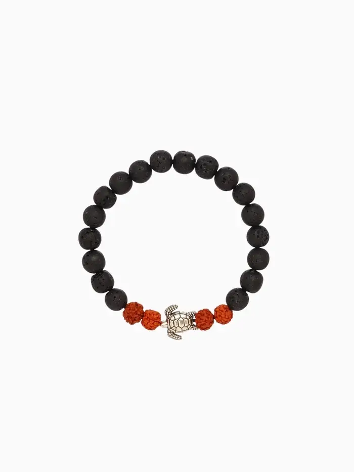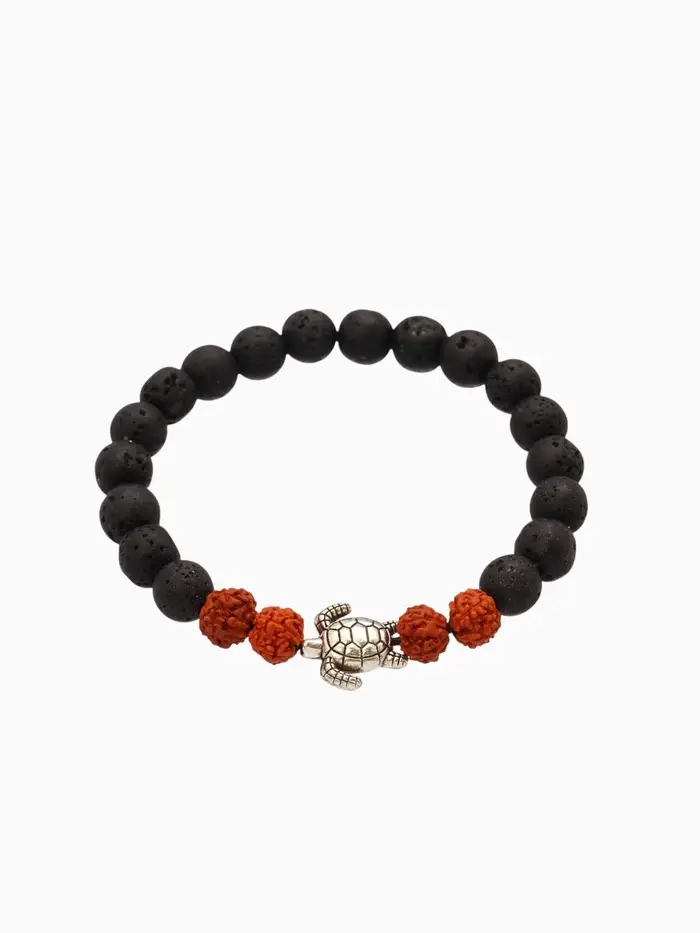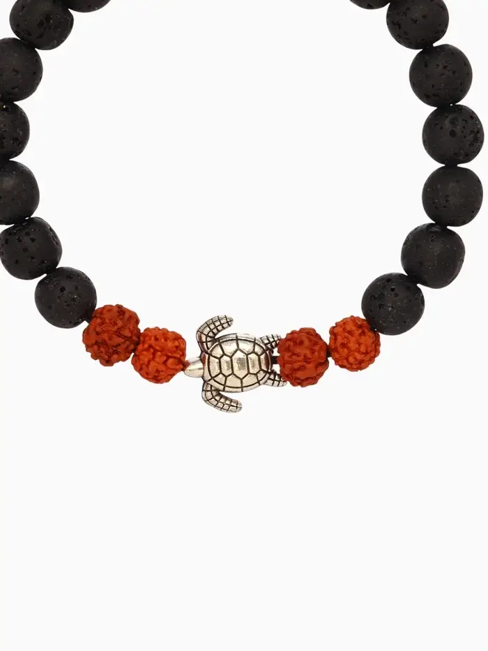 Браслет "Черепашка" лава, рудракша, длина 18 см, цв. чёрный, коричневый
