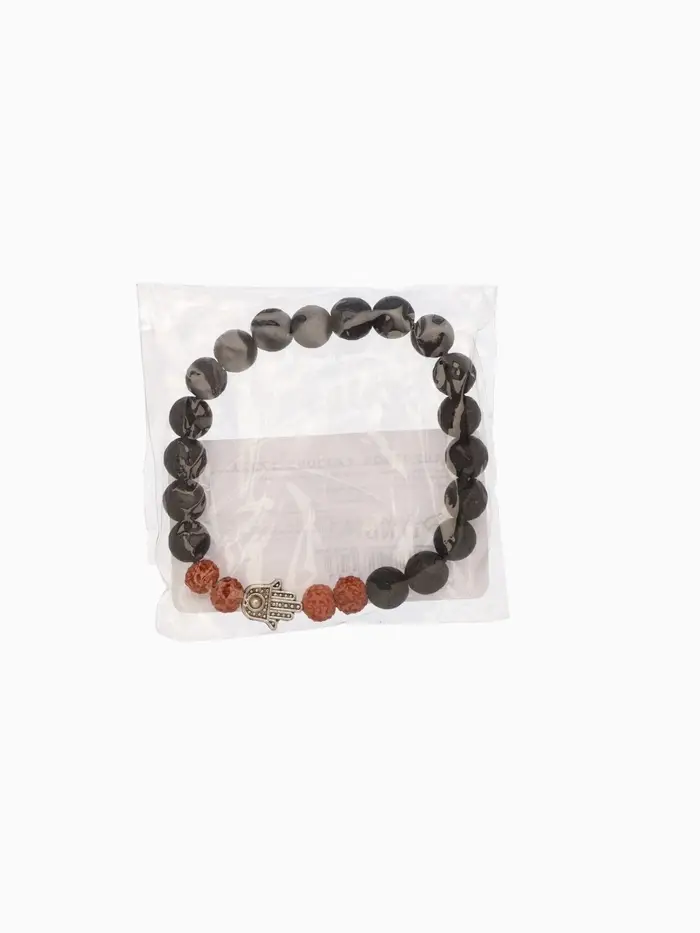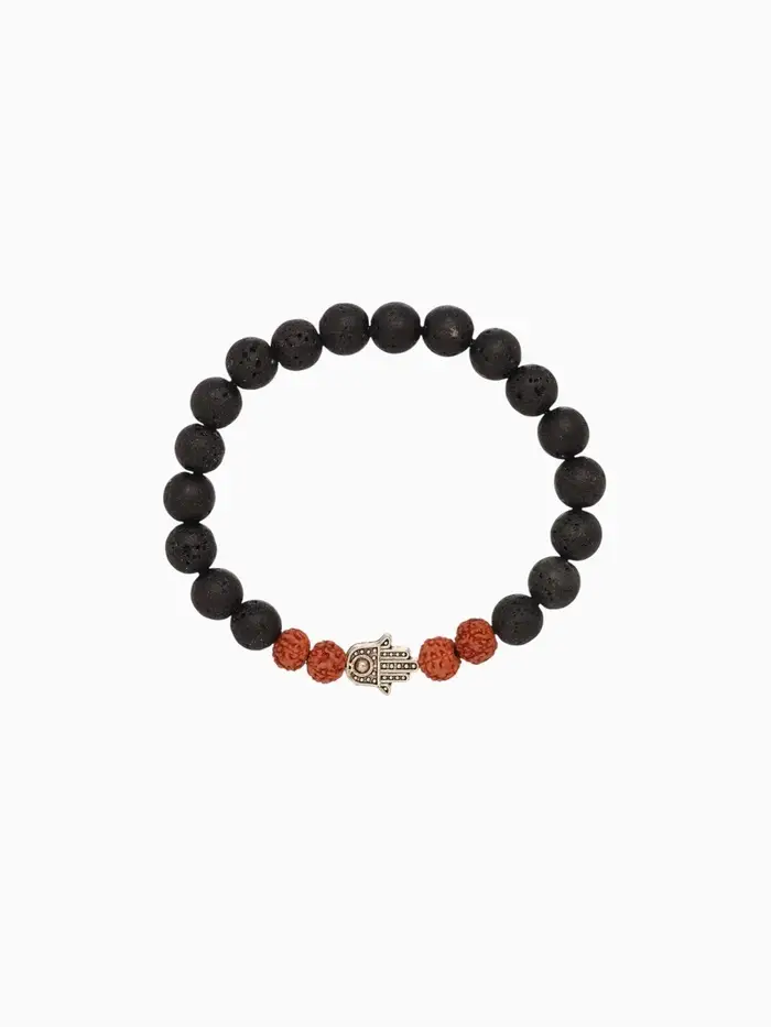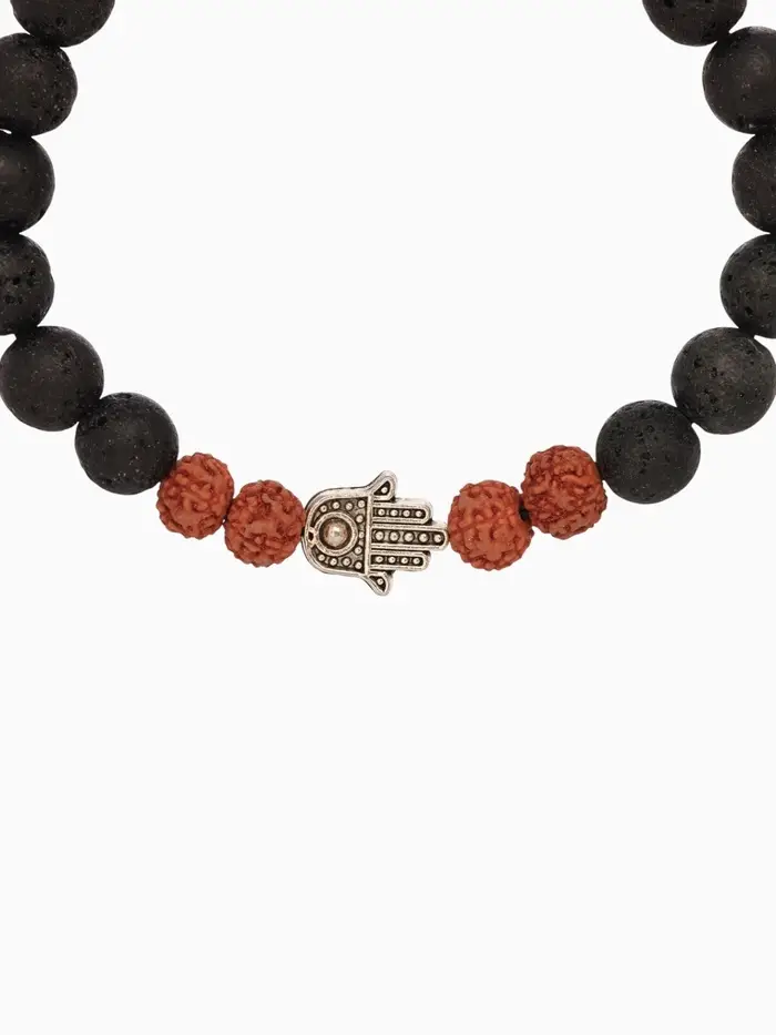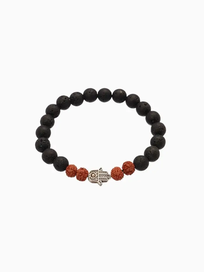 Браслет "Хамса" лава, рудракша, длина 18 см, цв. чёрный, коричневый