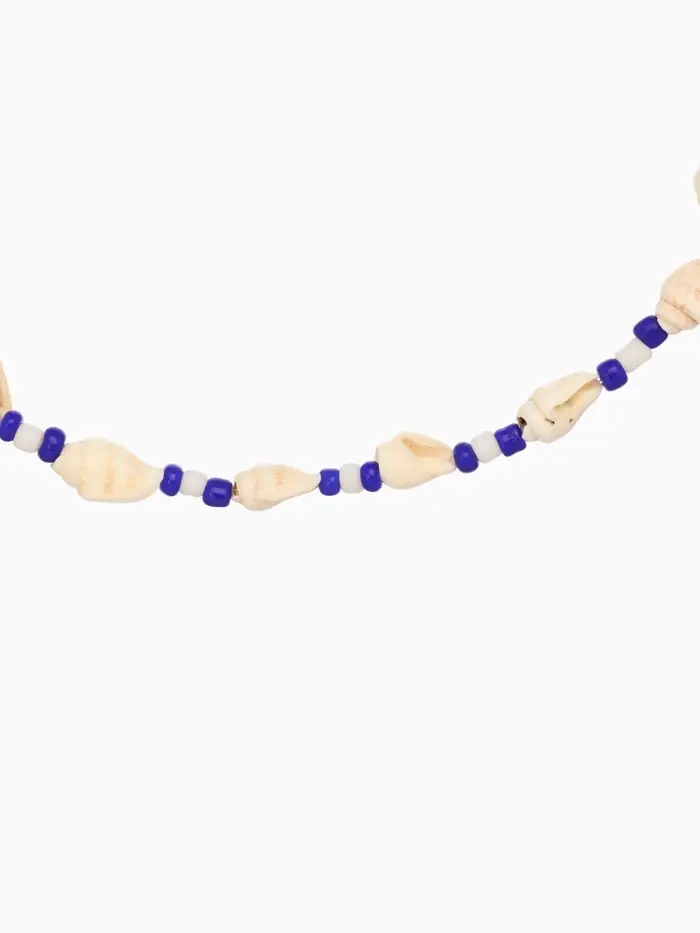 Браслет на ногу, анклет, длина 20 см, белый, синий