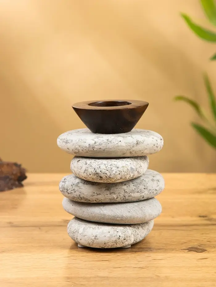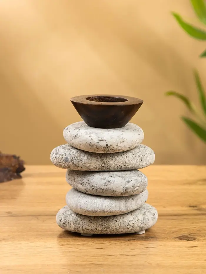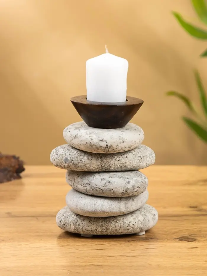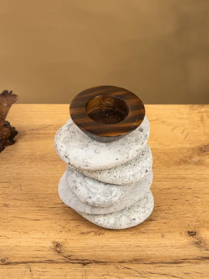 Подсвечник "Каменная башня" камень 10х10х13 см, цв. серый