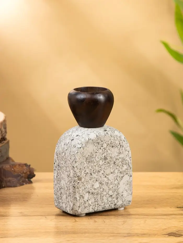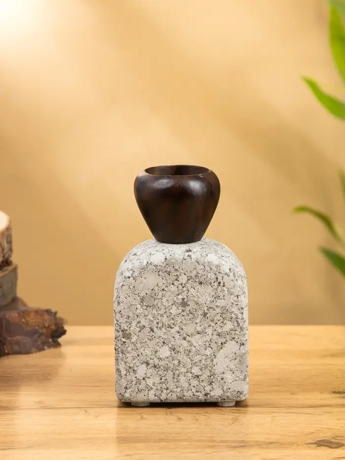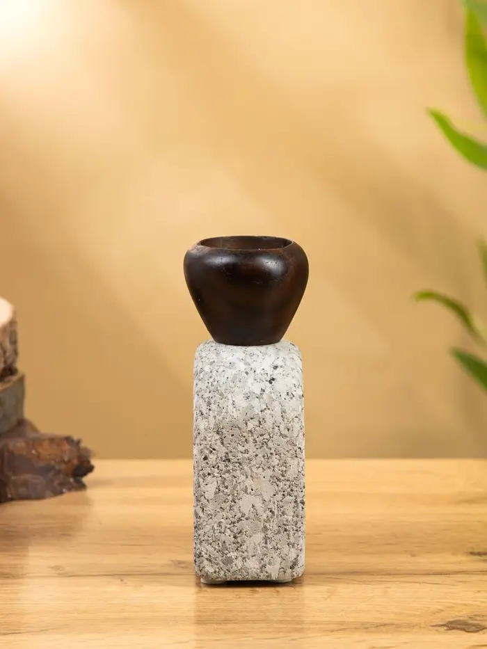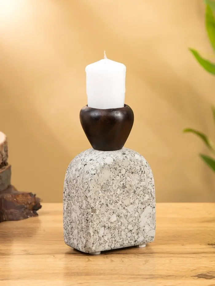 Подсвечник "Каменный факел" камень, дерево 8х5х15 см