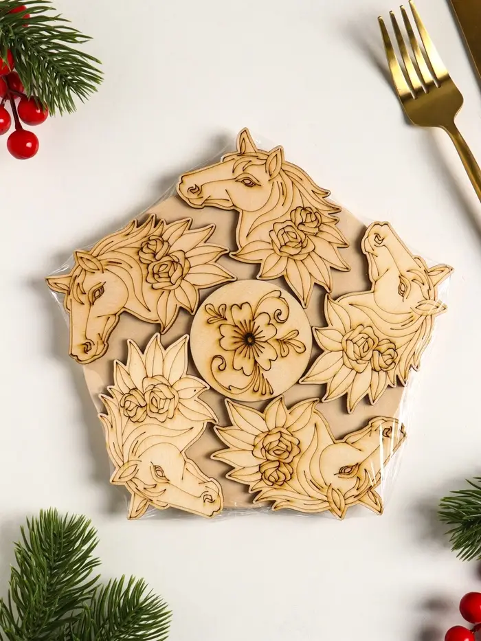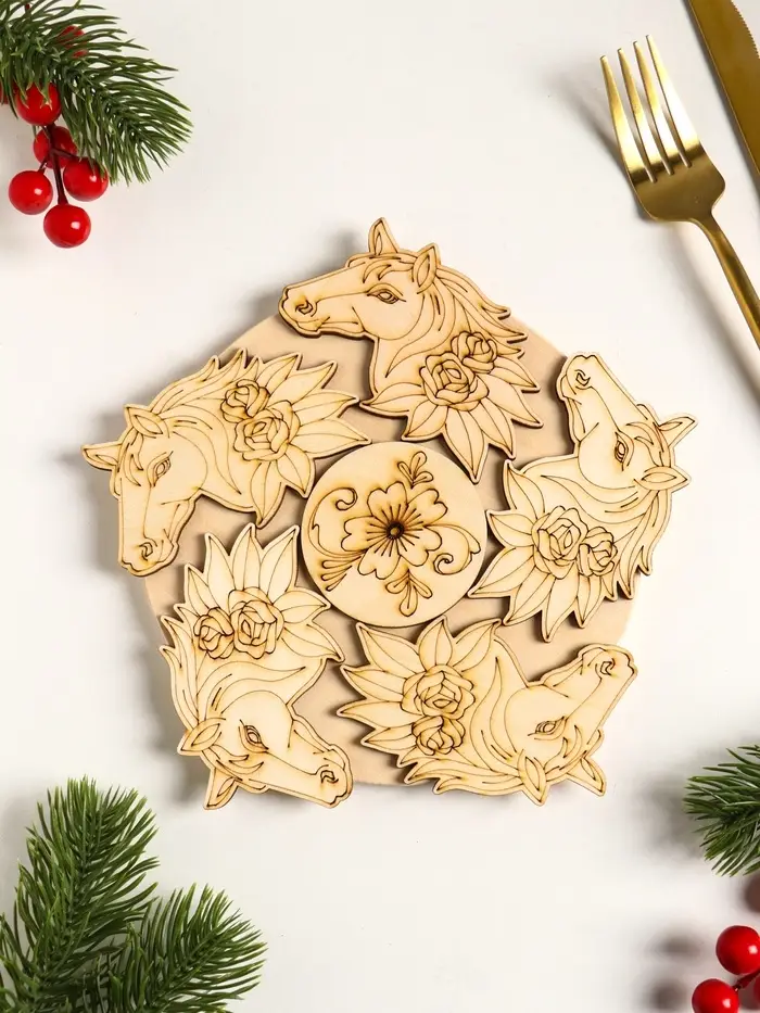 Подставка под горячее Лошадь в цветах,20см, можжевельник