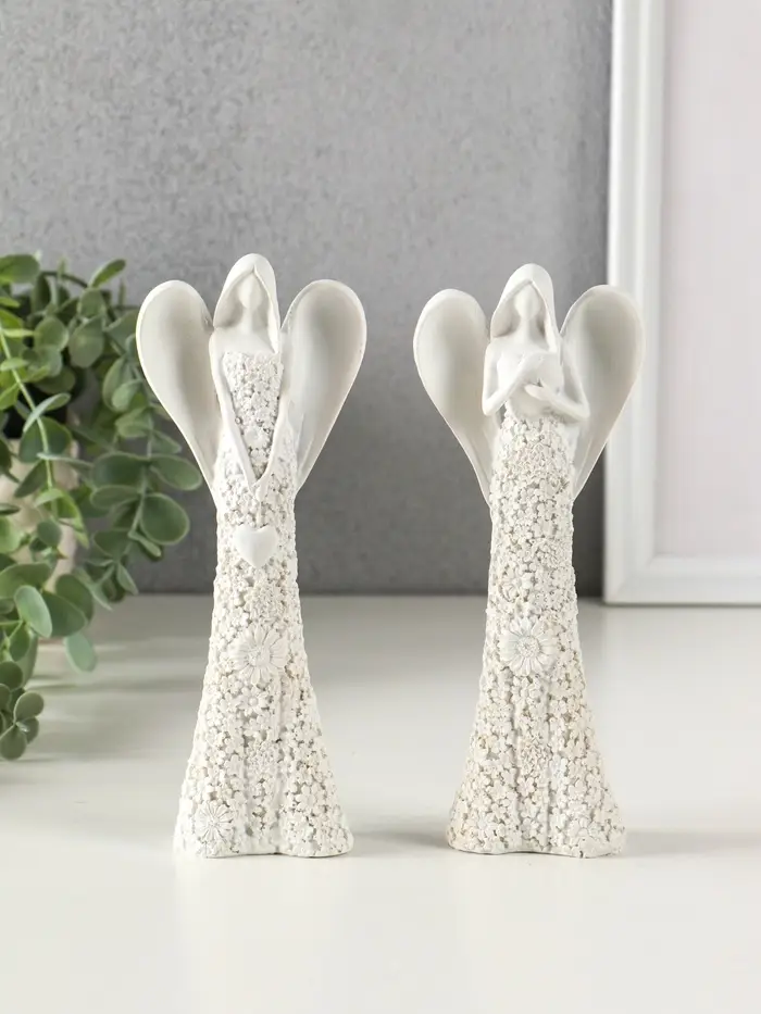 Сувенир полистоун "Безликий ангел в цветочном белом платье с сердцем" МИКС 20 см