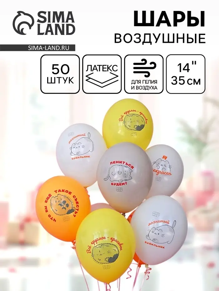 Воздушные шары латексные 14" "ПушМяу" 2 цв., набор 50 шт.