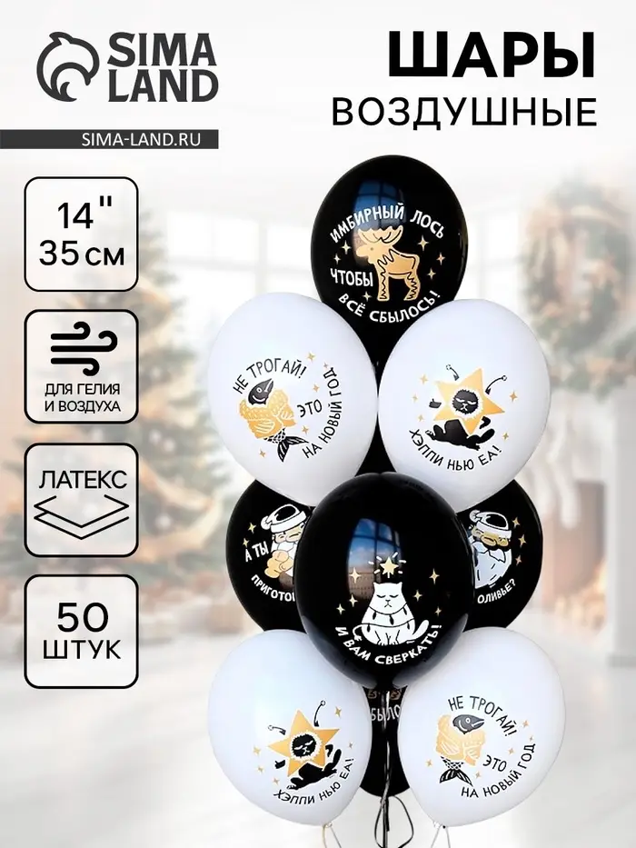 Воздушные шары латексные 14" "С НГ, прикольные" набор 50 шт.