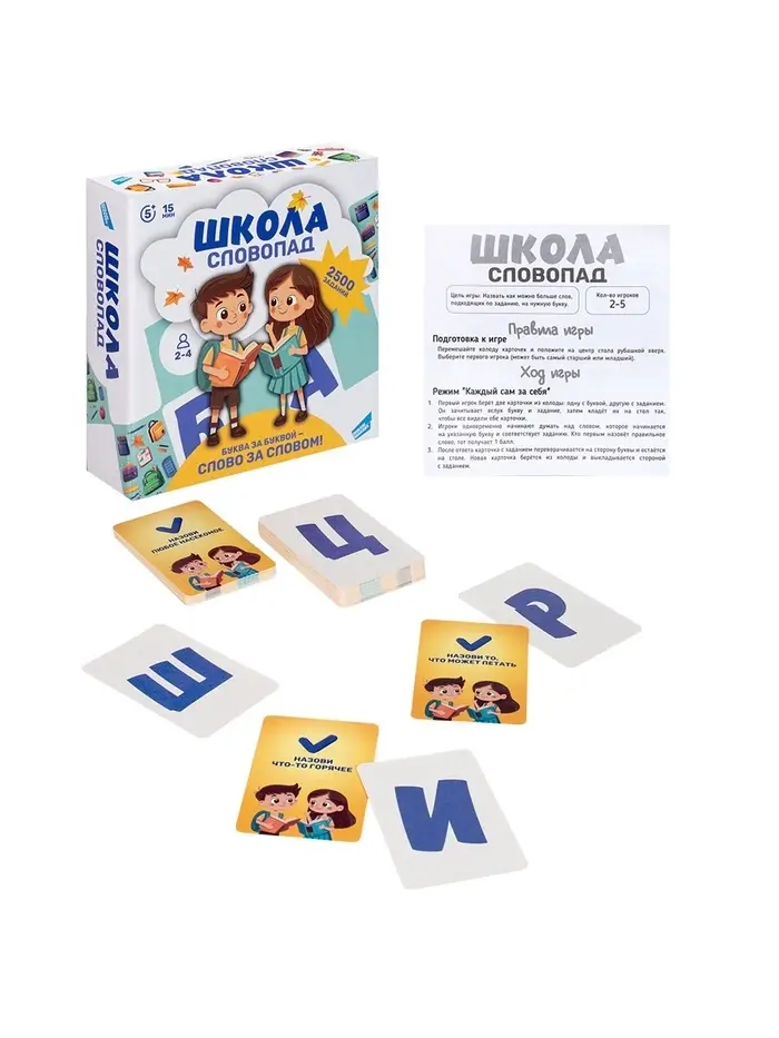 Весёлые слова, быстрые ответы и море идей! Представляем игру «Словопад. Школа» – динамичную словесную викторину, где дети придумывают слова, считают, рассуждают и соревнуются в сообразительности. Игра превращает обучение в увлекательное приключение, а каждое задание становится новым вызовом для ума. Подходит для домашних вечеров, школьных перемен и занятий в кружках.
