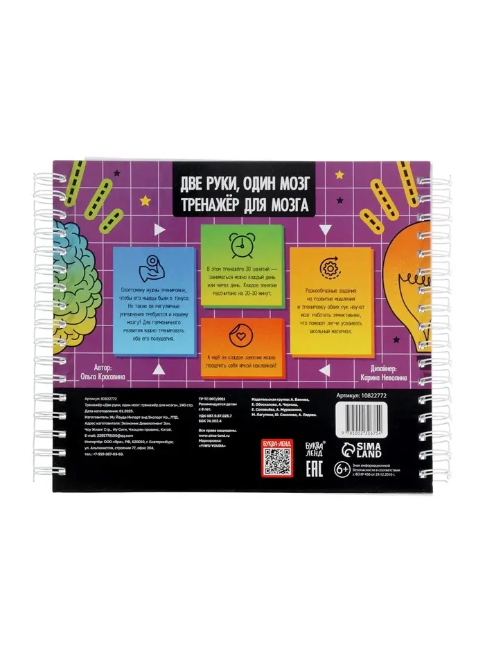 Тренажёр "Две руки, один мозг: тренажёр для мозга", 240 стр