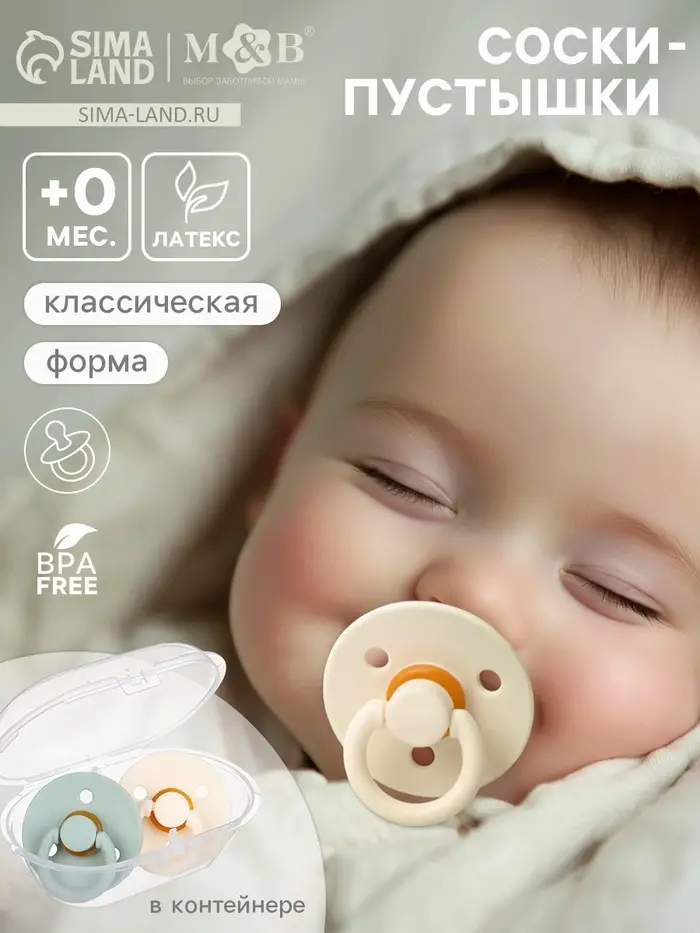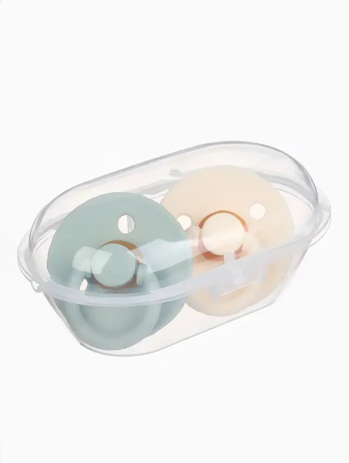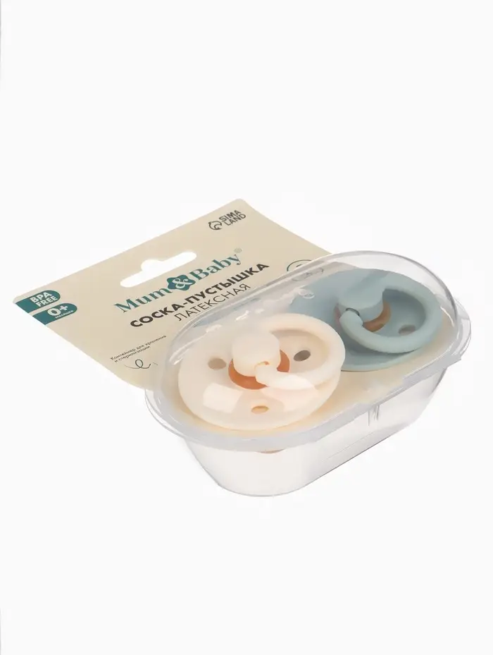 Соски-пустышки, от 0 мес., латекс, классические, в контейнере, набор из 2 шт., айвори/серо-зелёный, M&B