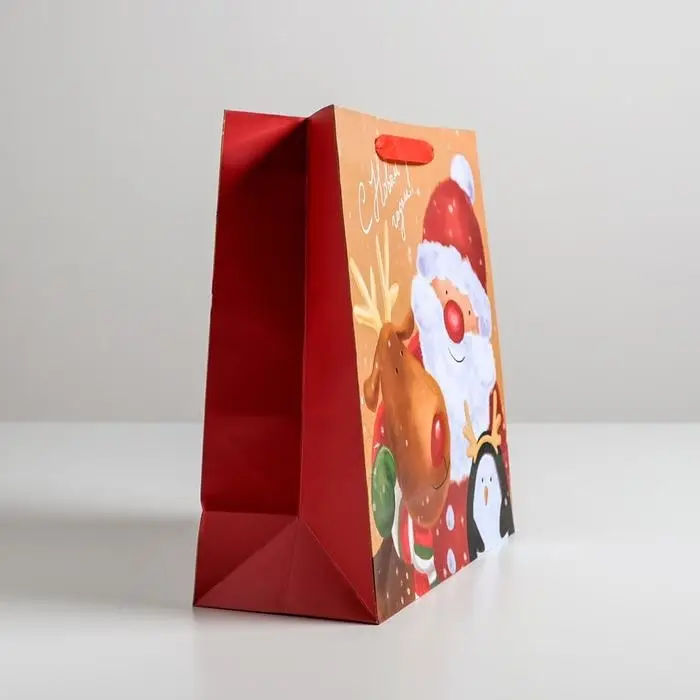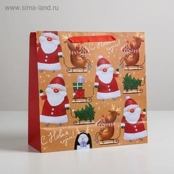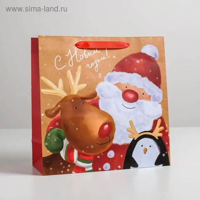 Пакет подарочный новогодний ламинированный квадратный «Весёлая компания», 30 х 30 х 12 см