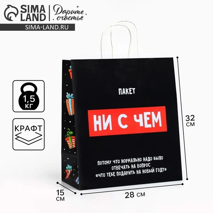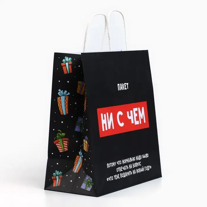 Пакет подарочный новогодний крафтовый «Пакет с сюрпризом», 28 х 32 х 15 см