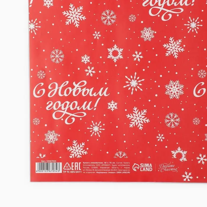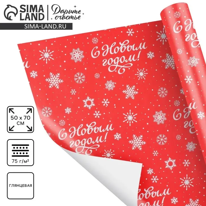 Упаковочная бумага на новый год «Снежный глянцевая», 50 х 70 см, глянцевая