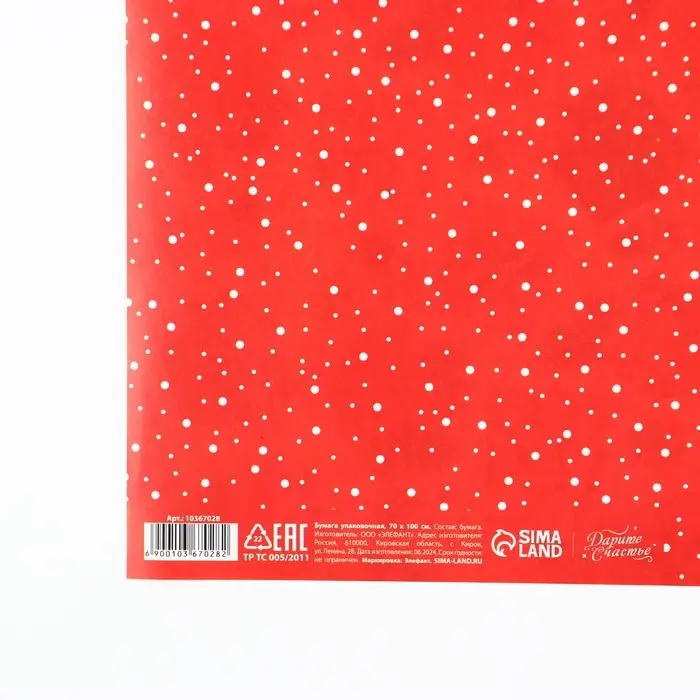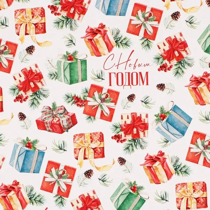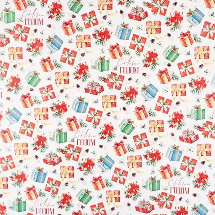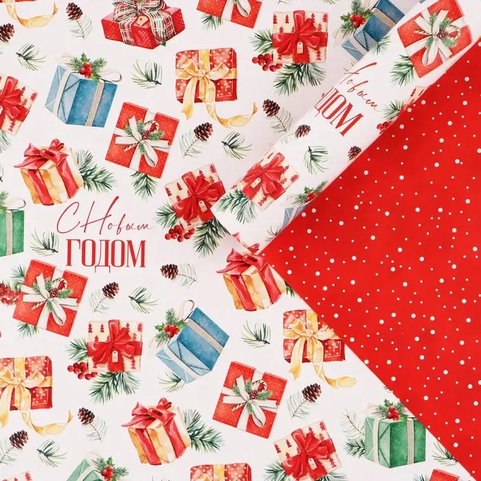 Упаковочная бумага на новый год глянцевая двухсторонняя «Новогодние подарки», 50 х 70 см