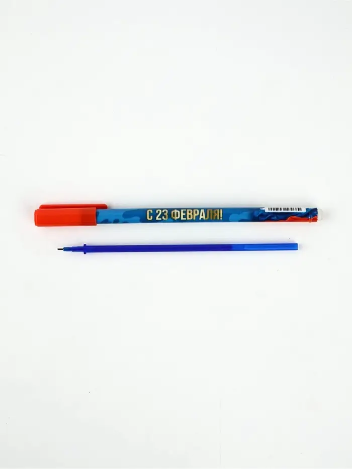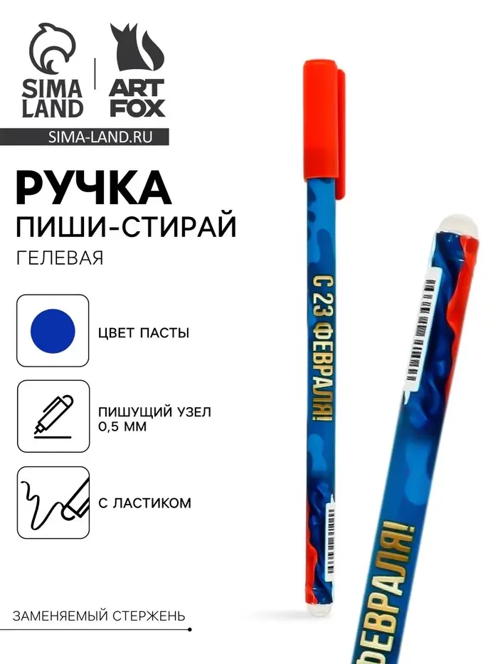 Ручка пластик пиши-стирай с колпачком «С 23 февраля», синяя паста, гелевая, 0.5 мм