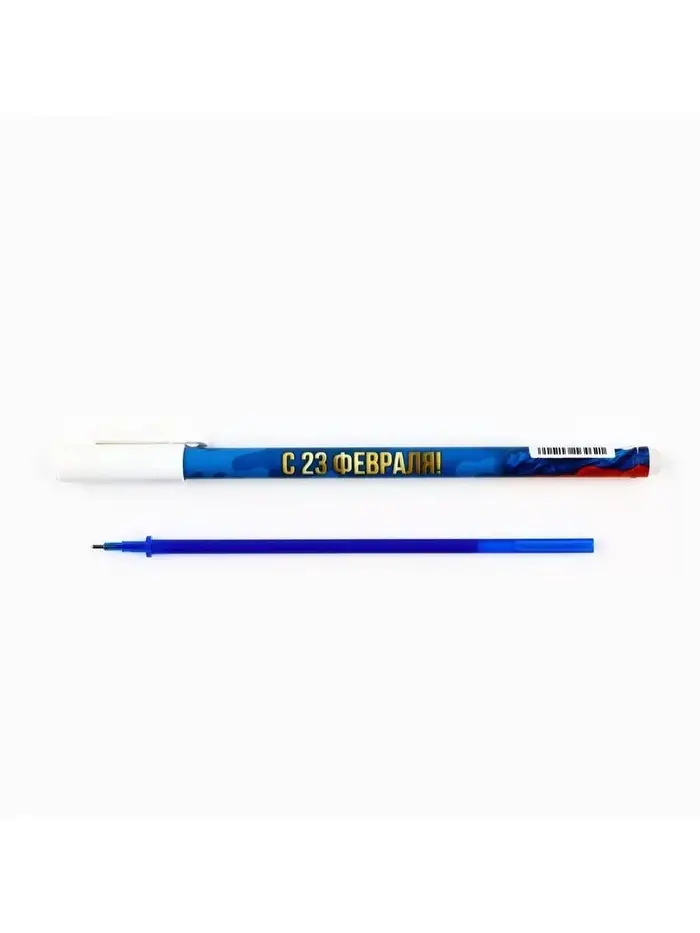 Ручка пластик пиши-стирай с колпачком "С 23 февраля", синяя паста, гелевая, 0,5 мм