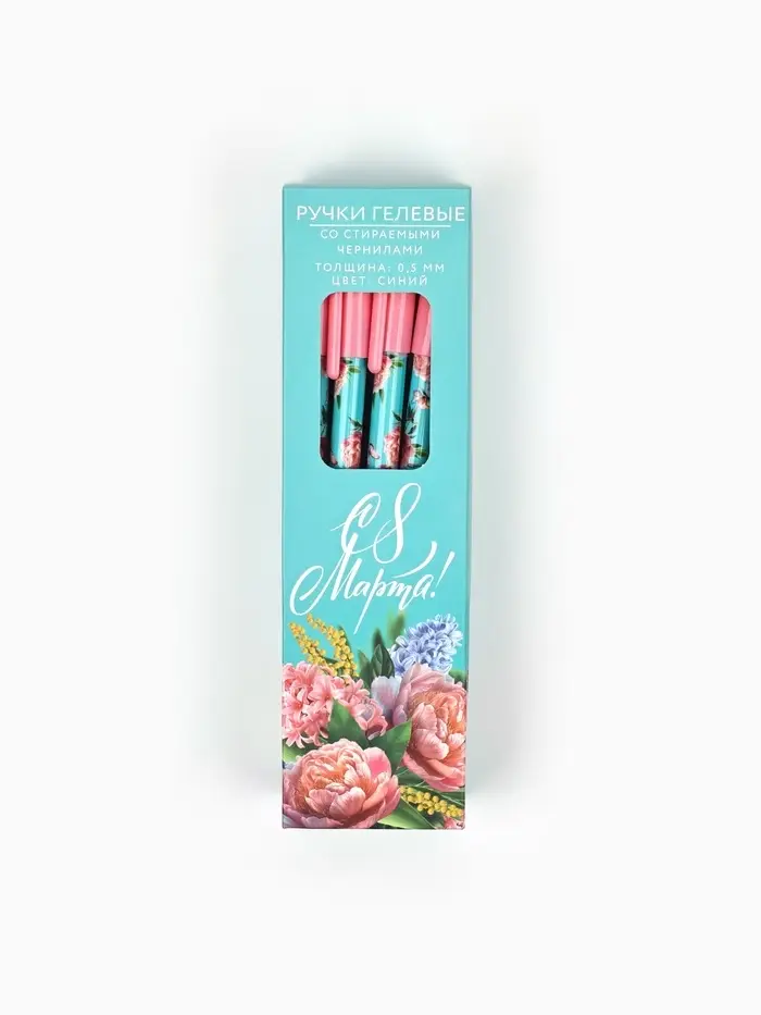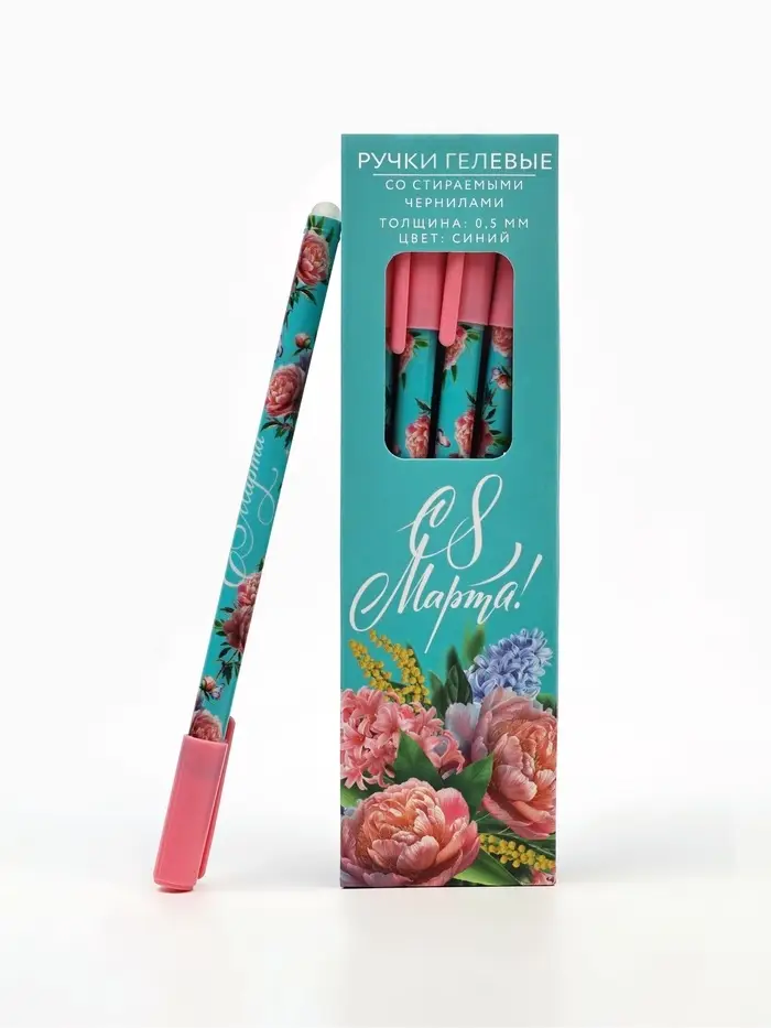 Ручка пиши-стирай, синяя паста, гелевая 0.5 мм с колпачком «С 8 Марта!»