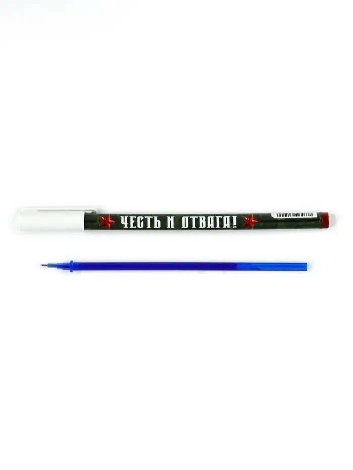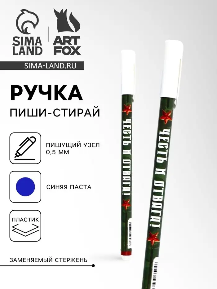 Ручка пластик пиши-стирай с колпачком "Честь и отвага!", синяя паста, гелевая 0,5 мм