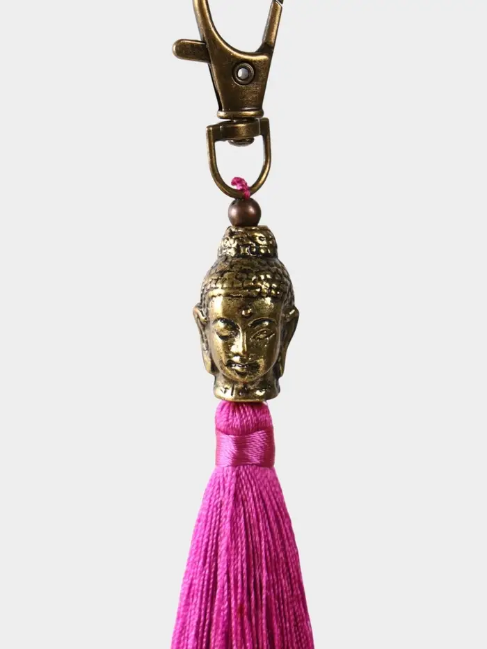 Брелок-кисточка "Будда" 17 см, цв. фуксия, золотистый