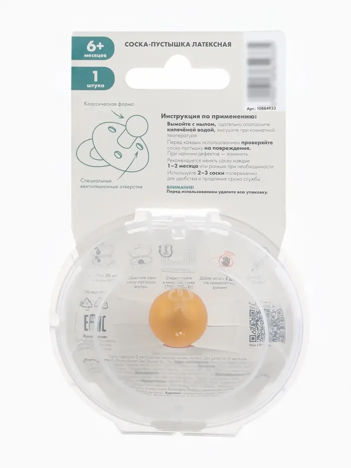 Соска - пустышка классическая, латекс, цв.серый, в контейнере, от 0 мес., M&B