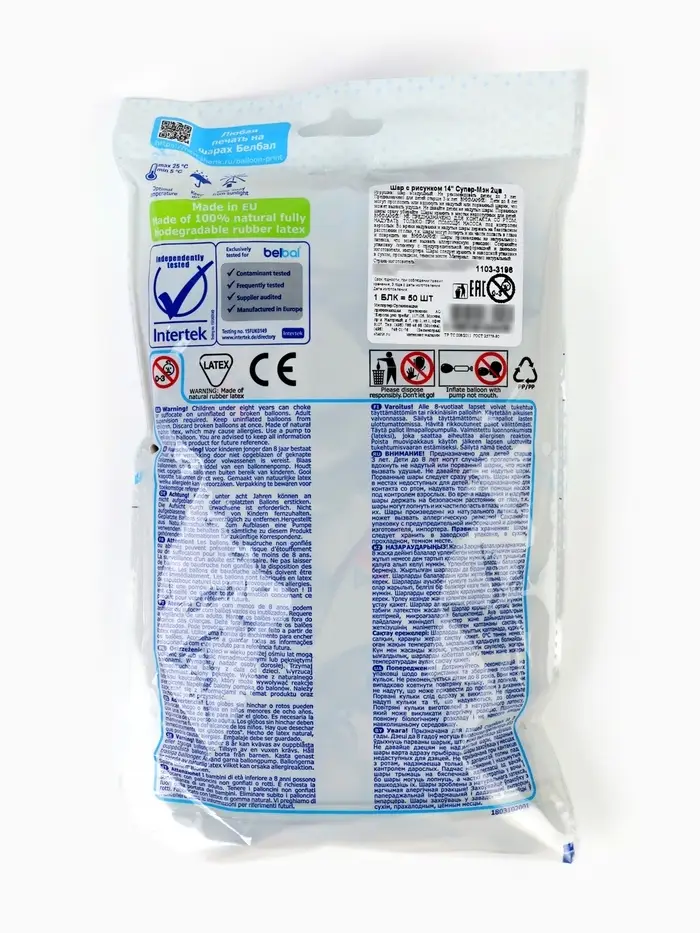 Воздушные шары латексные 14" "Супер-Мэн" набор 50 шт.