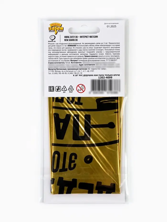 Воздушный шар фольгированный 18" кург "Дедушка как папа" инд.уп.