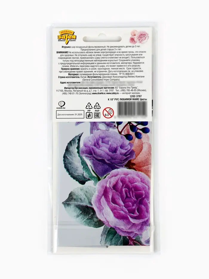 Воздушный шар фольгированный 18" круг "Любимой маме" инд.уп.