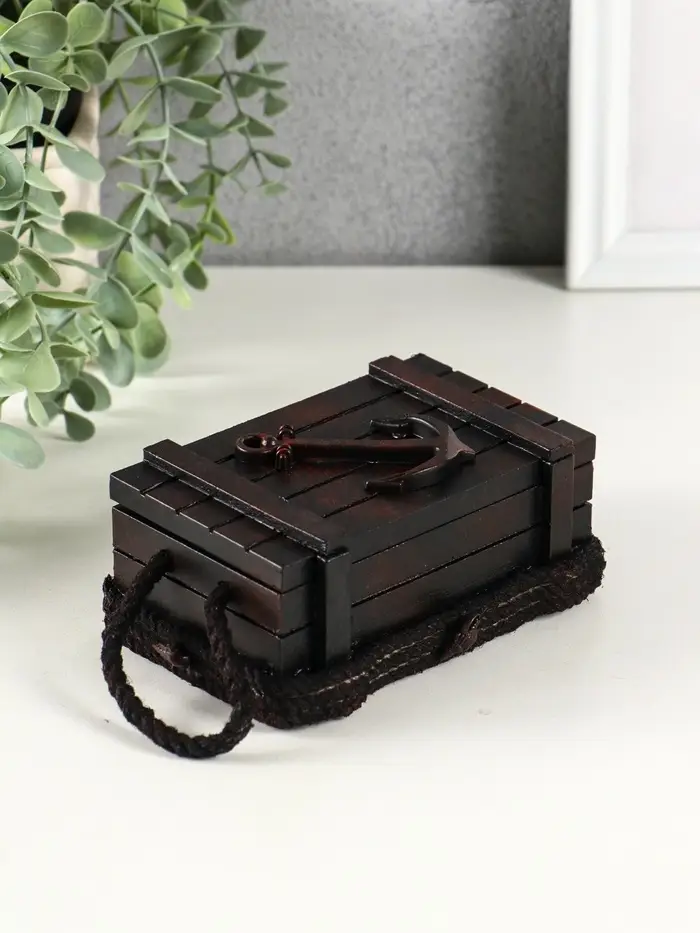 Шкатулка дерево "Морской сундук с якорем" красно-коричневая 12,8х8х5,5 см