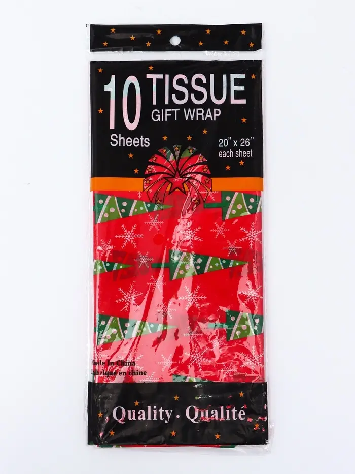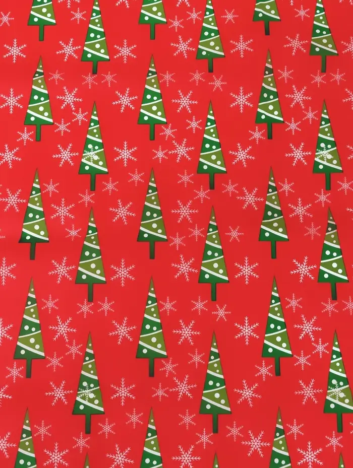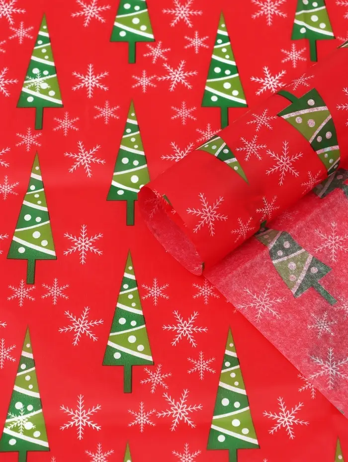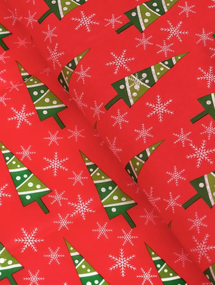 Бумага упаковочная тишью "Зимний лес", красная, 50 х 66 см