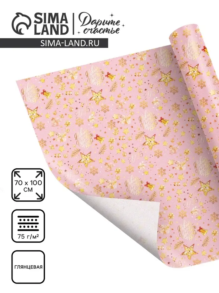 Бумага упаковочная глянцевая «Веселый Новый год», 70×100 см