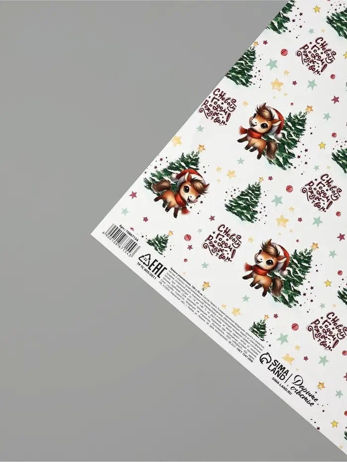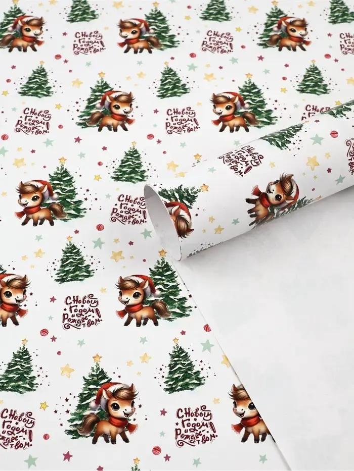 Бумага упаковочная глянцевая «С Новым годом и Рождеством», 70×100 см