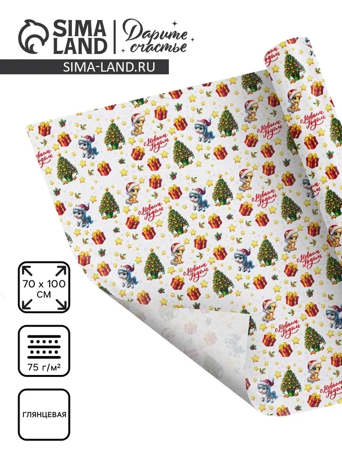 Бумага упаковочная глянцевая «С Новым годом», 70×100 см