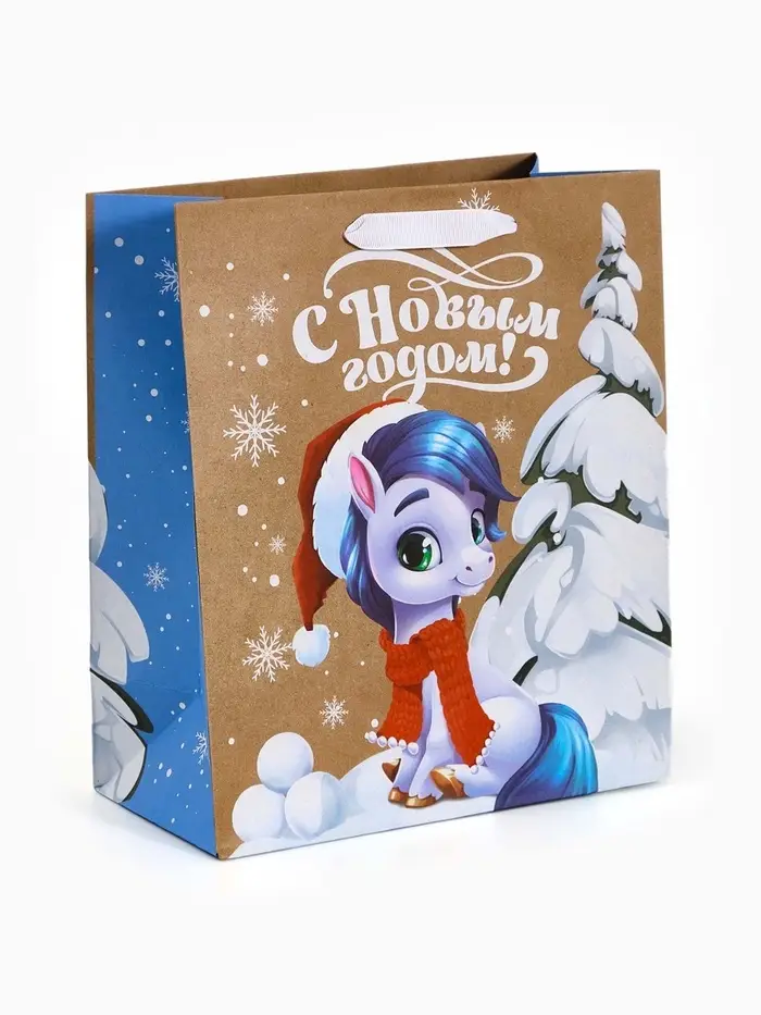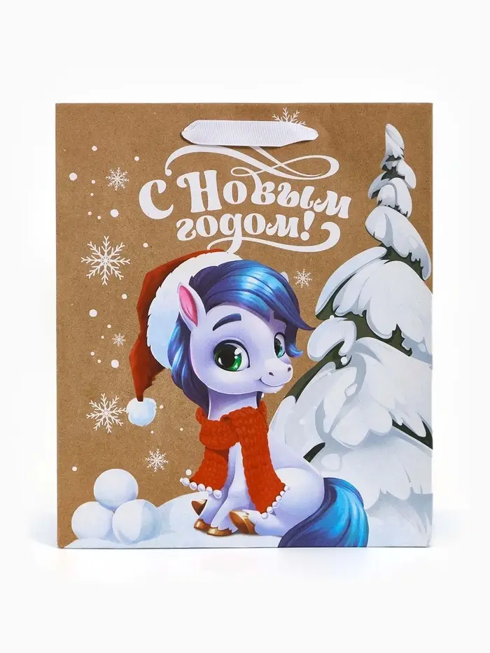 Пакет крафтовый подарочный «Конь», ML 23×27×11.5 см